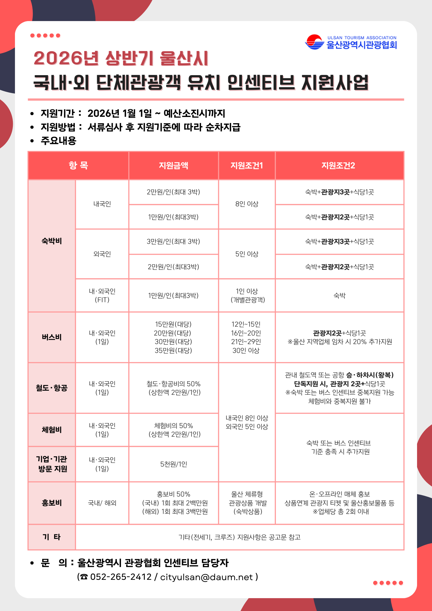 101 [°ü±¤°´À¯Ä¡º¸»óÁ¦µµ(Ÿ ½Ã,µµ)] 2026³â ¿ï»ê±¤¿ª½Ã »ó¹Ý±â ±¹³»¡¤¿Ü °ü±¤°´ À¯Ä¡ Àμ¾Æ¼ºê Áö¿ø¡¦ »ç¹«±¹ 02-04 13