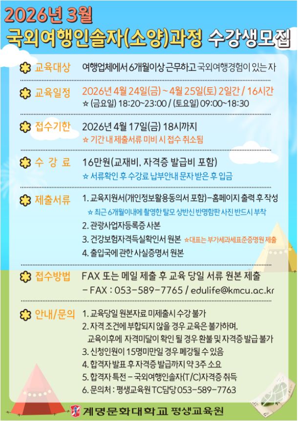 °è¸í¹®È´ëÇб³ Æò»ý±³À°¿ø¿¡¼ 2026³âµµ ±¹¿Ü¿©ÇàÀμÖÀÚ ¼Ò¾ç±³À°À» ¾Æ·¡¿Í °°ÀÌ ½Ç½ÃÇÕ´Ï´Ù.